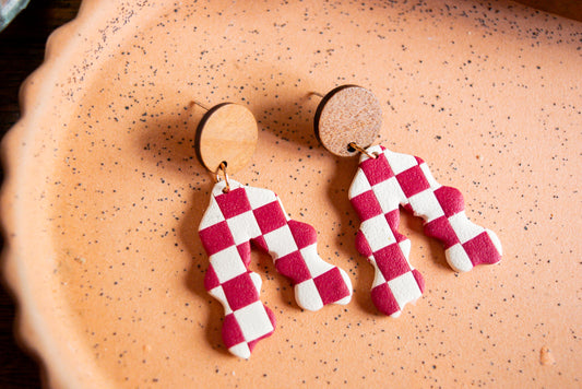 checkered maroon Rochelle dangles